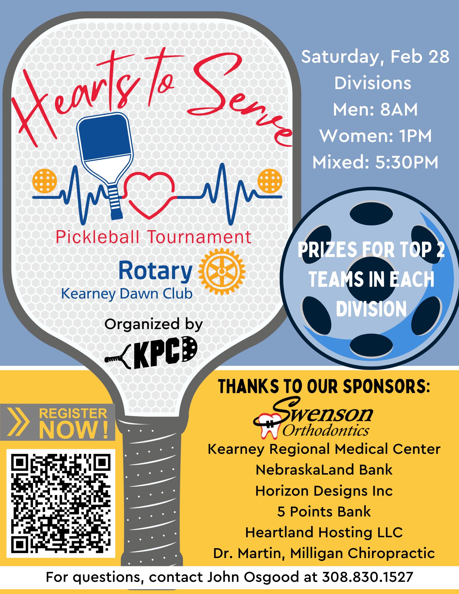2nd Annual Hearts to Serve Pickleball Tournament + Add to Google Calendar + iCal / Outlook export Date Feb 28 2026 Time All Day Location Buffalo County Fairgrounds 3807 Ave Nm Kearney, NE 68847 Share this event Search for: